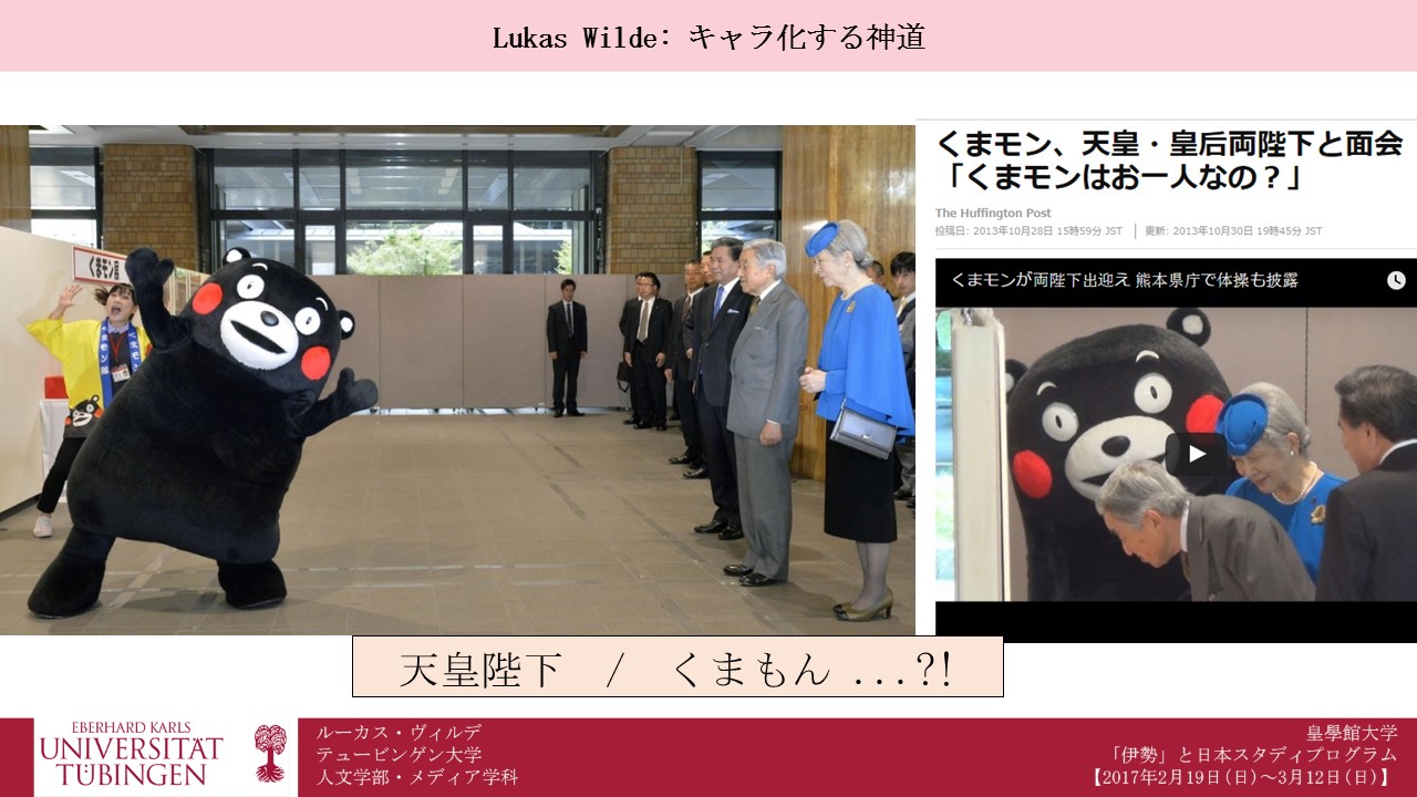 Okay, that’s why, for my presentation, I decided to focus on Ise’s mascot characters. This topic might seem of limited interest to you, but rest assured: it is much, much more complex and intellectually challenging than you would expect. One could easily write a book about it (which I have done). But especially, the task for this presentation was to develop some ideas that fascinated us during these 3 weeks, either regarding shinto, or regarding Ise, and I think that characters – or kyara – are a nodal point, a crossroad (a “kessetsuten”, as philosopher Azuma Hiroki might have said) between both of these areas. And maybe in more ways than one might think. That’s what I will be talking about.